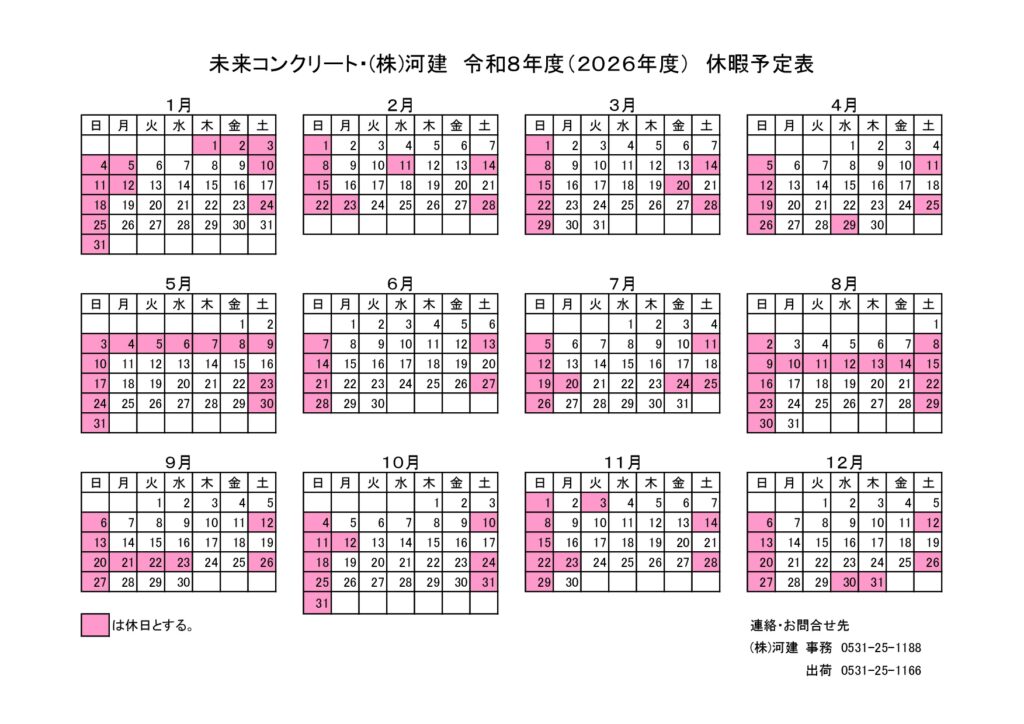2026年度の休暇予定表になります。
